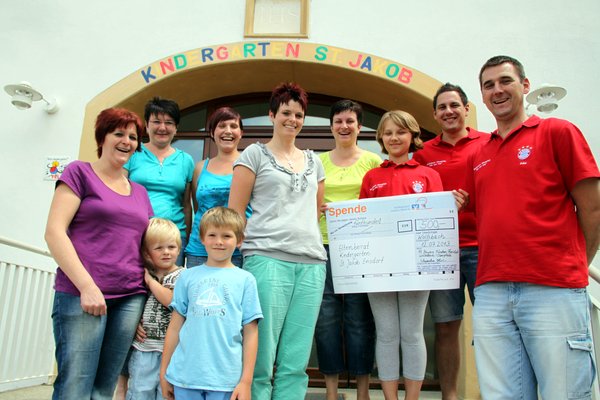 „Schon vorher“, so Oliver Schwendner, der Präsident des Fan Club, „haben wir beschlossen, den Erlös aus der Bewirtung, dem Kindergarten St. Jakob in Ensdorf zukommen zu lassen.“ Bei der Spendenübergabe war Kindergartenleiterin Heidi Moser überrascht über deren Höhe. „Gleich 500 Euro haben wir schon lange nicht mehr bekommen.“ „Wir werden die große Spende für die Anschaffung einer Motorikwand im Garten verwenden“, versicherte Elternbeiratvorsitzende Kathleen Völkel.