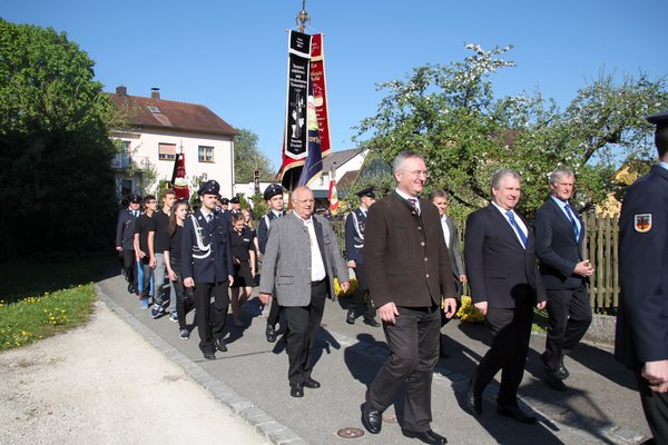 Feuerwehrvereinsvorsitzender Heinrich Eichenseer begrüßte zum Florianstag neben den vielen Feuerwehrleuten, Vorsitzenden und Kommandanten u.a. MdL Dr. Harald Schwartz, stellvertretenden Landrat Franz Birkl, KBI Hubert Blödt und die Kreisbrandmeister Bürgermeister Markus Dollacker mit mehreren Gemeinderäten. MdL Dr. Schwartz erklärte in seinem Grußwort, dass der Freistaat Bayern stolz auf seine Feuerwehren und in ihren Einsatz sei und sie unterstütze. Franz Birkl überbrachte die Grüße von Landrat Richard Reisinger. „Die Gemeinden und der Landkreis stehen hinter den Feuerwehren, die an 365 Tagen 24 Stunden zum Schutz der Bevölkerung einsatzbereit sind.“ Bürgermeister Markus Dollacker: „Wir brauchen und wollen mit dieser Feier den Schutz des heiligen Florian erbitten, damit alle wieder nach dem Einsatz gut nach Hause kommen. Zum anderen wird dieser Tag genutzt, um Gemeinschaft untereinander zu pflegen, Nicht nur der Einsatz muss miteinander bewältigt werden, geübt soll und wird miteinander, sondern auch gefeiert.“