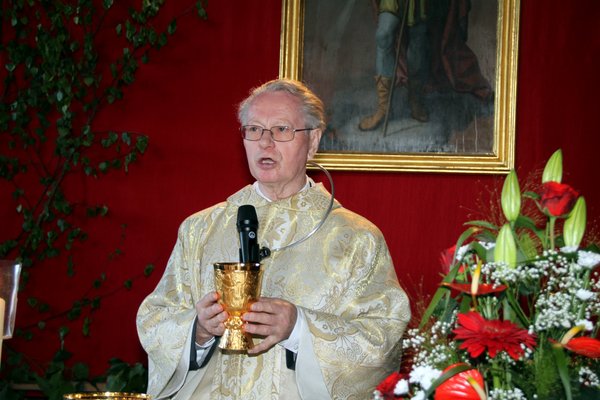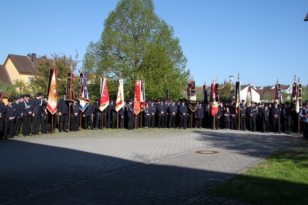 In einem langen Festzug marschierten Hunderte Feuerwehrleute aus 29 Wehren zum Gottesdienst, den die Blaskapelle mit der Schubert-Messe musikalisch umrahmte. Pfarrer Pater Hermann Sturm ging zunächst auf das Leben des Heiligen Florian, dem Schutzpatron der Feuerwehren ein. „Es gibt wohl kaum einen Verein oder eine Institution, wie die Feuerwehr, die immer Tag und Nacht gleichermaßen ehrenamtlich zum Einsatz für Menschen da ist. Ihr gebt den Bürgern Schutz und Sicherheit, das Gefühl und das Wissen, dass Menschen für ihren Schutz da sind. Ohne die Frage Wo? oder Wer?. Die Sirene geht, die Meldung kommt, Ich bin gefordert ohne Wenn und Aber. Hilfe, Einsatz, vielleicht sogar unter Einsatz des eigenen Lebens. Natürlich setzt dies auch viele Bereitschaft zu Übung und Fortbildung voraus. Jeder ist mein Nächster, ob Freund oder Feind, ab Nachbar oder Fremder, ob Deutscher oder Ausländer“, betonte er. „Ihnen allen für ihre Bereitschaft zu löschen, zu bergen, zu schützen und zu retten nach dem Motto ‚Gott zur Ehr’, dem Nächsten zur Wehr’ ein herzliches Vergelt’s Gott!“