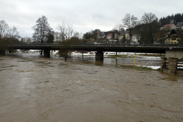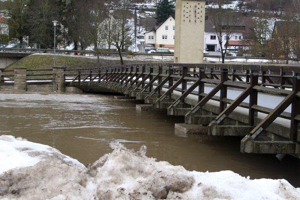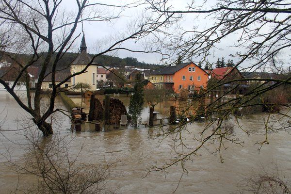 In Leidersdorf haben die Wassermassen der Vils mittlerweile die Unterkante der Brücken erreicht.