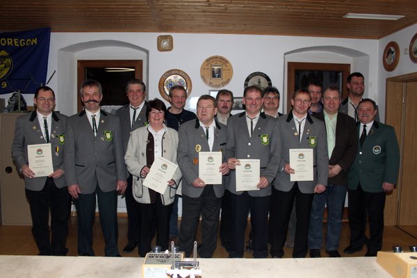 Für 40-jährige Mitgliedschaft wurde Anni Fleischmann geehrt. Für Verdienste um das Schützenwesen erhielt Johann Eichenseer das silberne Ehrenzeichen. Heinrich Graf, Edwin Marschall, Rita und Marvin Thomas für verdienstvolle Mitarbeit im Oberpfälzer Schützenwesen. Joachim Baldauf und Lothar Donhauser wurden gar mit Gold ausgezeichnet. Für besondere Mitarbeit im Schützenwesen erhielt Thomas Drick die silberne Verdienstnadel. Die Verdienstauszeichnung in Silber bekam Richard Drick, die am Bande Johann Hollweck. Für „ganz besondere Verdienste“ wurde Konrad Riedl mit dem Protektor-Ehrenzeichen der Klasse 1 ausgezeichnet, der höchsten Auszeichnung, die der Oberpfälzer Schützenbund verleiht.