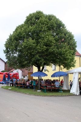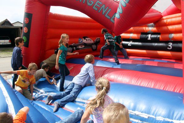 Die Gäste – alt und jung – saßen in fröhlicher Runde lange beisammen, unterhielten und erinnerten sich an frühere Zeiten. Für die Kinder hatten die Hofstettener eine Hüpfburg aufgebaut, die eifrig genutzt wurde.