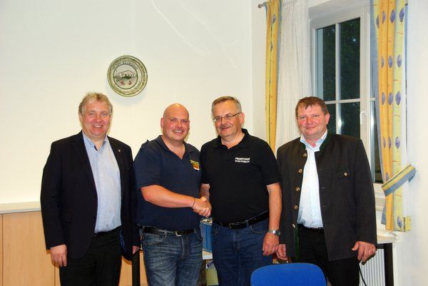 Abends im Gerätehaus Wolfsbach wurde bei einer Feier mit Bewirtung die Feuerwehr-Patenschaft durch die Kommandanten Wolfgang Schäffer und Günter Schindler sowie die Bürgermeister Josef Unterberger und Markus Dollacker beschlossen und per Handschlag besiegelt. Die Urkunden werden dann beim nächsten Treffen – voraussichtlich im Oberpfälzer Wolfsbach - ausgetauscht. Kommandant Schindler bedankte sich höflich für die Einladung und überreichte seinem Amtskollegen als Gastgeschenk eine gerahmte Bilder-Collage der Freiwilligen Feuerwehr Wolfbach in der Oberpfalz. Die Niederösterreicher luden die Oberpfälzer postwendend wieder ein. Diesmal im Mai 2017 zu „Floriani“ und der dann stattfindenden Einweihung eines neuen Feuerwehrfahrzeuges.