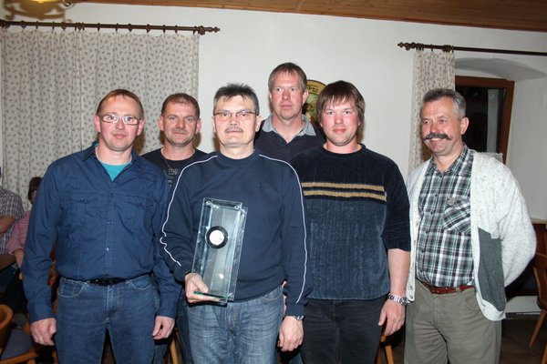 Nachdem die drei bestplatzierten Mannschaften des Vorjahres – 1. „Familie Marschall“ , 2. „Stoabeißa“, 3. „Stoabruchland“ – wieder angetreten waren, warteten alle gespannt auf die Mannschaftsergebnisse des Dorfpokalschießen 2011. Konnte sich der Vorjahressieger wieder behaupten und neben Wanderpokal 50 Liter Bier mit nachhause nehmen? Wer gewann 30, wer 20 Liter Bier? Die Schießleiter Thomas und Richard Drick machten es besonders spannend, denn sie fingen bei der Bekanntgabe der Ergebnisse „von hinten“ an. „14. und letzter wurde der „Tschechen-Clan mit 4373 Teilern“, verkündete er und arbeitete sich langsam zur Spitze vor. „Den 3. Platz erzielten die „Stopslquerscheißa Gedlbauer, die im vergangenen Jahr noch auf Platz sieben belegten mit 1650 Teilern. Den zweiten Platz belegt „Stoabruchland“, die sich mit 1601 Teilern um einen Rang gegenüber dem Vorjahr verbesserten. Sieger und damit Gewinner des Dorfpokalschießens 2011 ist – wie im Vorjahr - die „Familie Marschall“ mit 1524 Teilern. Man sieht, dass sich die Gewinner vom letzten Jahr ihren Titel und die Trophäe nicht nehmen ließ und diese erfolgreich verteidigten!“ Wenn sie auch 2012 gewinnen sollten, geht der Pokal nach dreimaligem Gewinn in ihren Besitz über.