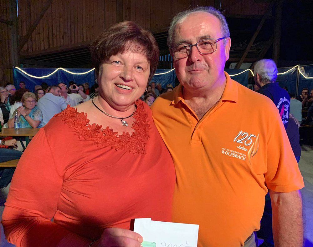 Sie alle hätten dazu beigetragen, dass das Jubiläum und die eingebundene Magdalenen-Kirchweih vom 26. bis 29. Juli zu einem vollen Erfolg geworden sei. Mit Spanferkelbraten oder Schnitzel mit Salaten und Getränken wolle man allen Helfern ein kleines Dankeschön abstatten, so Eichenseer. Dann noch eine mehr als angenehme Überraschung für den Feuerwehr-Vorsitzenden und seine Kameraden: Im Auftrag des Wolfsbacher Frauenkreises überreichte dessen Sprecherin Regina Senft an Feuerwehr-Vorsitzenden Heinrich Eichenseer 2000 Euro für den Feuerwehr-Verein. Die Frauenkreismitglieder, die bei der Wolfsbacher Magdalenen-Kirchweihen immer für die Kaffee- und Kuchentheke verantwortlich zeichnen, hätten auch bei der Jubiläumsfeier diese Aufgabe übernommen. Aus dem Erlös überreichten sie den Spendenbetrag, wie sie auch, so Eichenseer im seinen Dankesworten, schon öfter örtliche Vereine wie auch die Festdamen des Feuerwehrfestes und die Feuerwehrjugend unterstützt hätten.