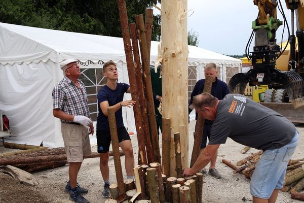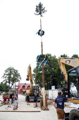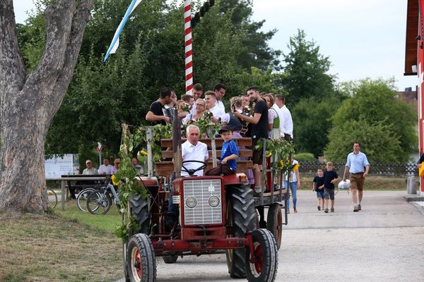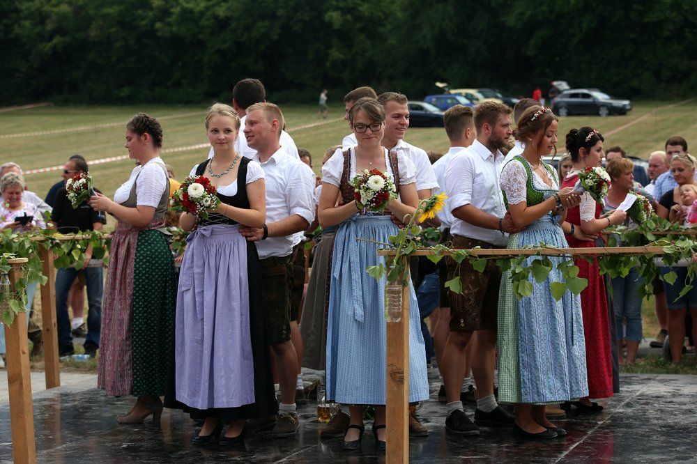 "Mei liaba, mei liaba, in Wolfschba, dou is Kirwa!" Etwas anders als sonst feierten die Wolfsbacher ihre Magdalenen-Kirwa. Sie wurde mit dem 125-jährigen Gründungsjubiläum der Feuerwehr begangen. Der über 30 Meter hohe Kirwabaum wurde am Samstagmittag aufgestellt. Der Wetterbericht kündigte für Samstagabend zwar Regenschauer im Vilstal an, diese blieben während des Baumaustanzens aber aus. Bei perfekten Temperaturen tanzten die acht feschen Paare, die mit einem Bulldog zum Festplatz gebracht worden waren.