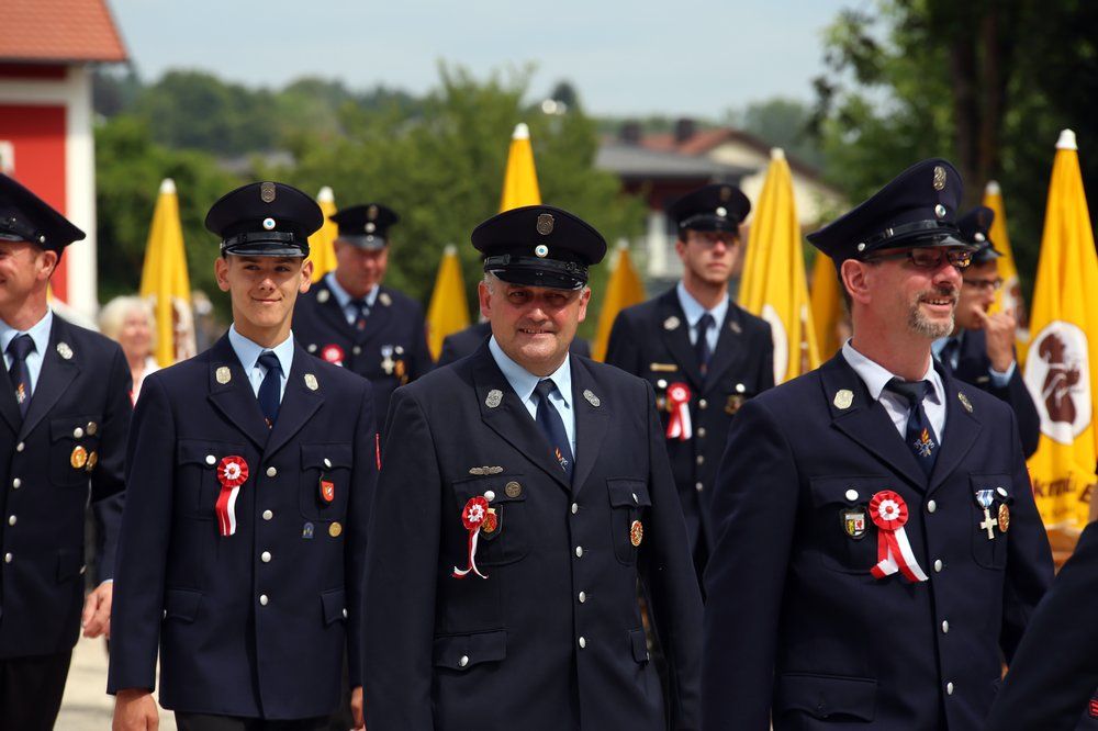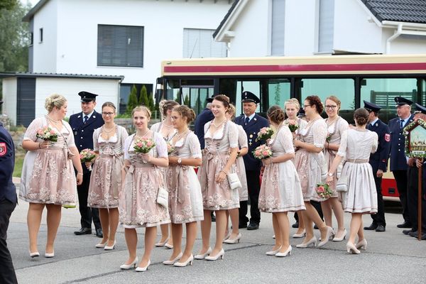 Der Sonntag begann für die Jubelwehr bereits um halb Acht in der Früh. Dabei wurden mit dem Weckruf durchs Dorf die Festdamen eingeholt. Der Patenverein, die Freiwillige Feuerwehr Vilshofen, wurde in der Ortsmitte in Empfang genommen und gemeinsam mit der Blaskapelle Dietldorf zog man ins Festzelt ein. Dort wartete ein Weißwurstfrühstück auf die beiden Vereine.